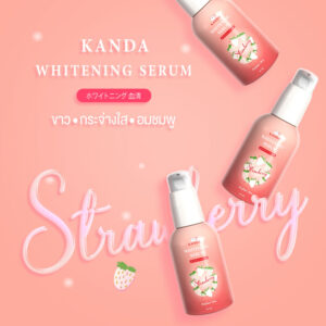 KANDA Whitening Serum is whitening serum with white strawberry Extract in which provide brightening solution. Prevent melasma and acne scar. Kanda Whitening Serum is paraben free and suitable for all of skin type กันดะ ไวท์เทนนิ่งเซรั่ม เป็นเซรั่มบำรุงผิว ช่วยให้ผิวขาวกระจ่างใส ด้วยสารสกัดจากสตรอว์เบอร์รี่ขาว ที่จะช่วยให้ผิวขาวอมชมพู ซึมเข้าสู่ผิวได้ไว ช่วยยับยั้งและลดเลือนรอยฝ้า กระ และจุดด่างดำ อันเกิดจากรอยแผลเป็นของสิว